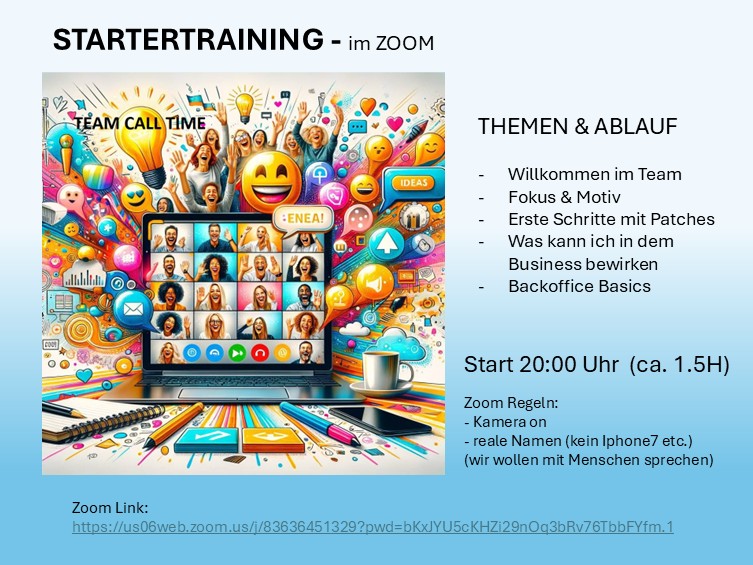 Bestehnde Partner und Gäste, Interessenten sind herzlich Willkommen, sich erste Infos abzuholen. Alle weiteren Fragen und Infos bekommst danach von Deinem Empfehlungsgeber.